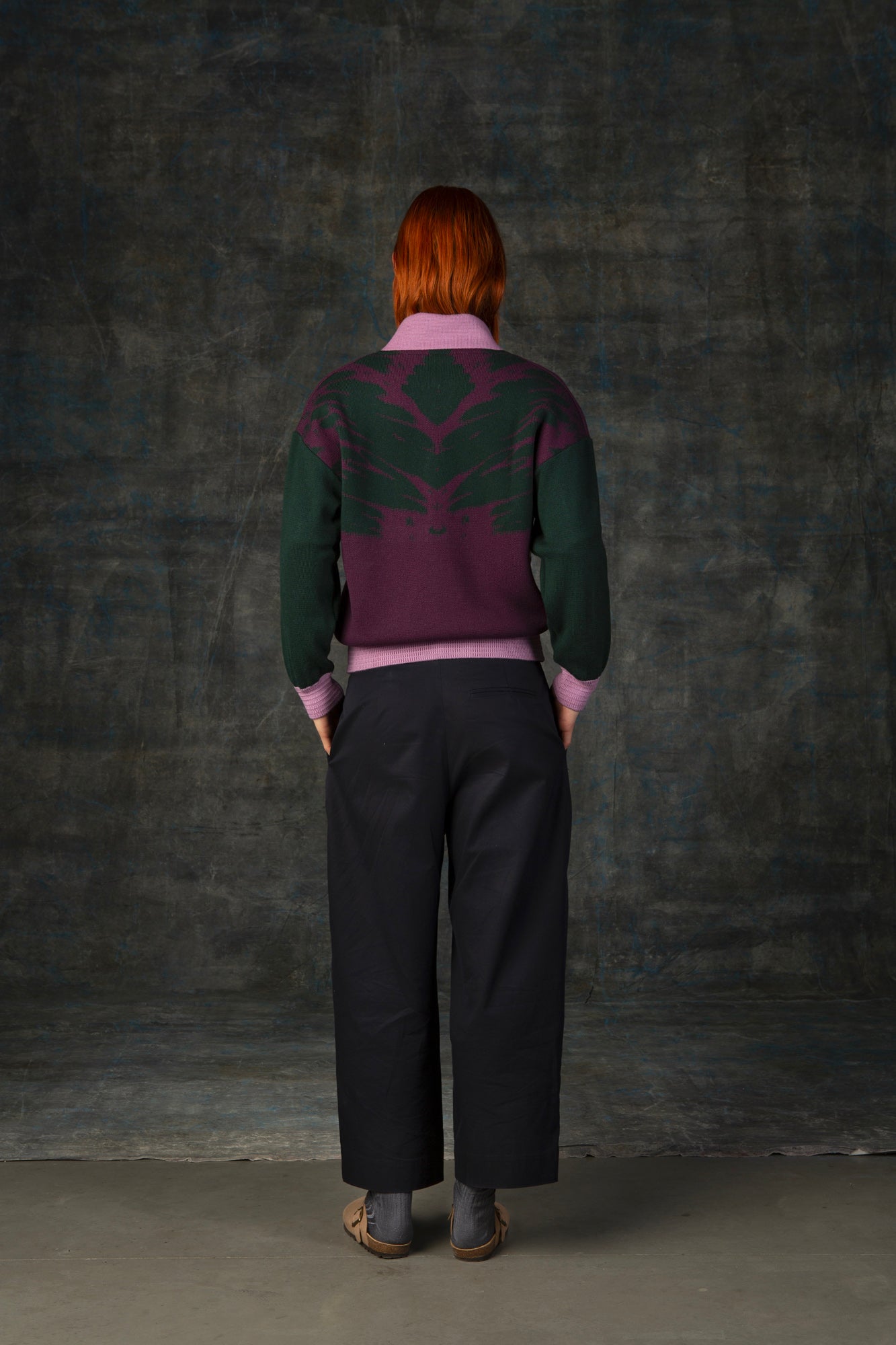 De NOCTUA bomber is gebreid uit 100% extra fijne merinowol en voelt zacht en gezellig warm. De speelse kleurvlakken en het subtiele motief op de rug, geïnspireerd op nachtvlindervleugels, geven de bomber een unieke look.
