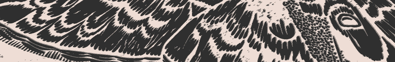 Vanuit die verwondering creëerde Merlijne een reeks linosneden, met de hand gegutst en gedrukt in zwart-wit. Elk beeld is een grafisch landschap van lijnen, een samenspel van textuur en ritme, net-niet-symmetrisch en altijd trouw aan de mot.