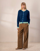 De kleine parelmoeren knoopjes voegen een subtiel vleugje charme toe. Draag de cardigan dichtgeknoopt als trui of losjes open over een top als een nonchalant jasje.
