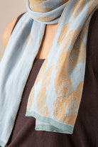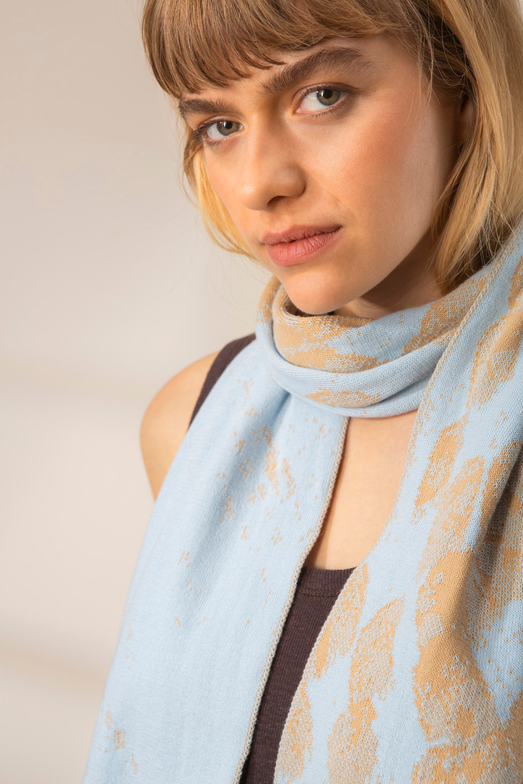 SATURNI sjaal is een lichte jacquard gebreide sjaal van 100% biologisch katoen. Het omkeerbare design is aan beide kanten zichtbaar, waardoor je twee looks in één hebt.