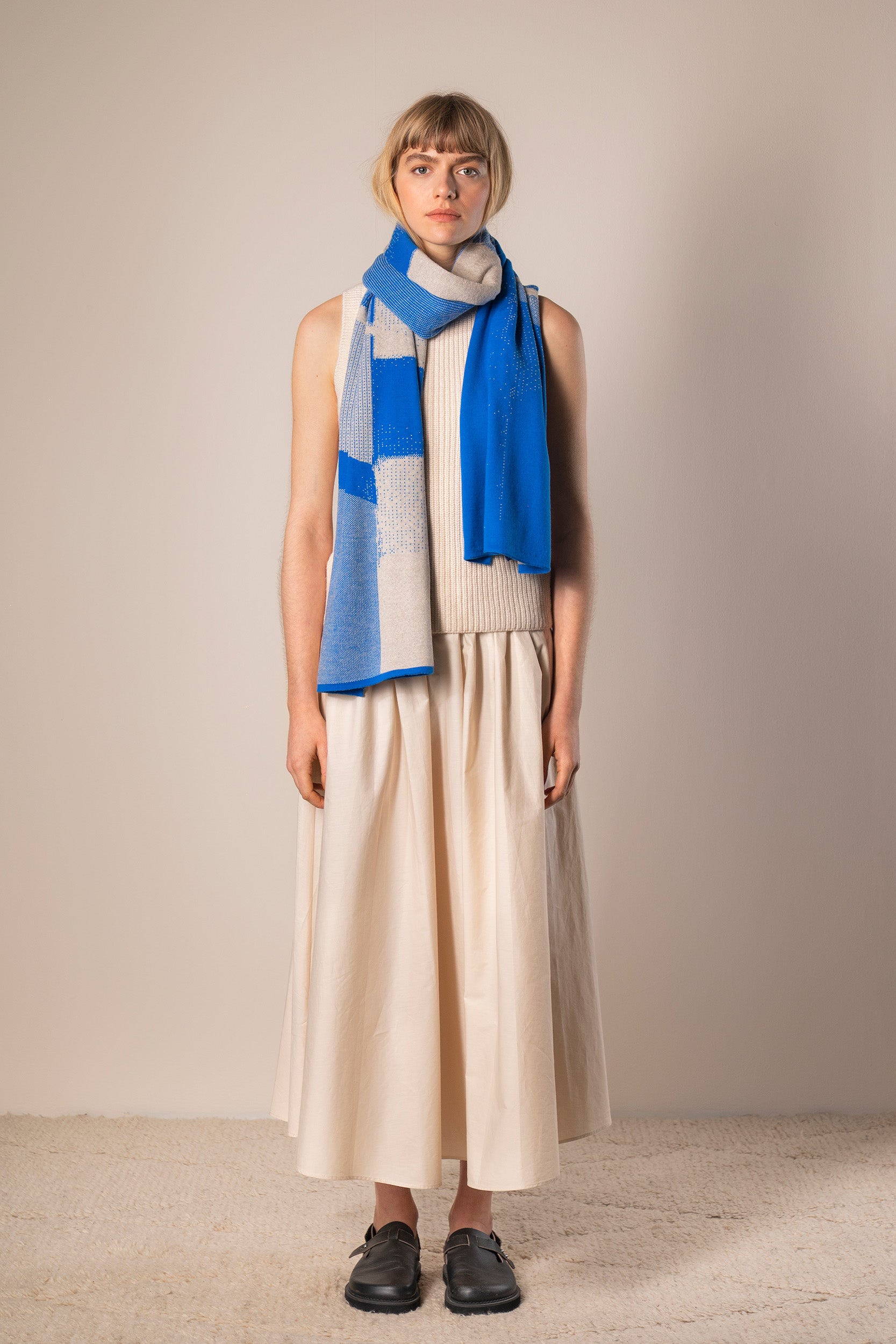 Myosotis 05 is a refined knitted scarf in a delicate jacquard.