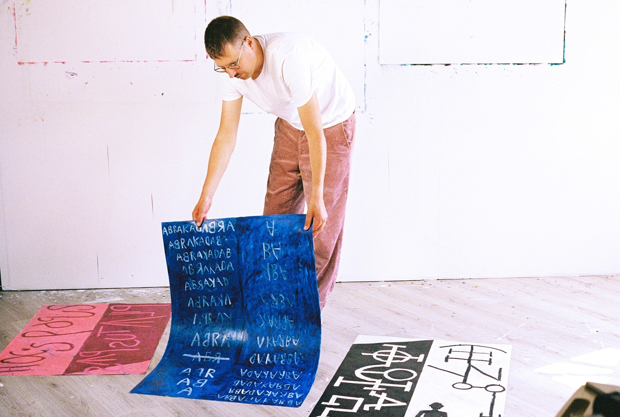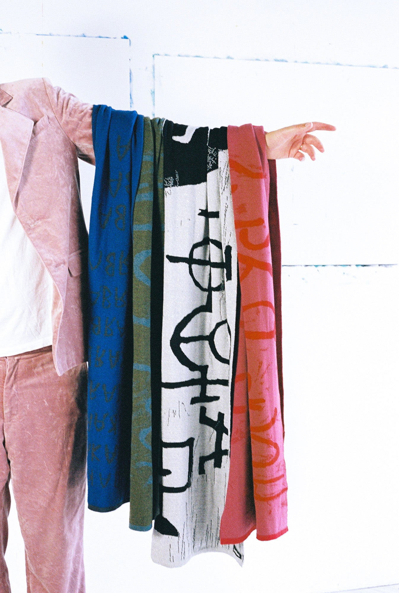 Wolvis and visual artist and writer Maarten Inghels designed four magical scarves together. Maarten incorporated spells from medieval grimoires into oil paint drawings, which in turn were translated into scarves. We believe that a scarf from this series will offer you protection and that you will be able to disappear (in it) at the right moment... Magic!